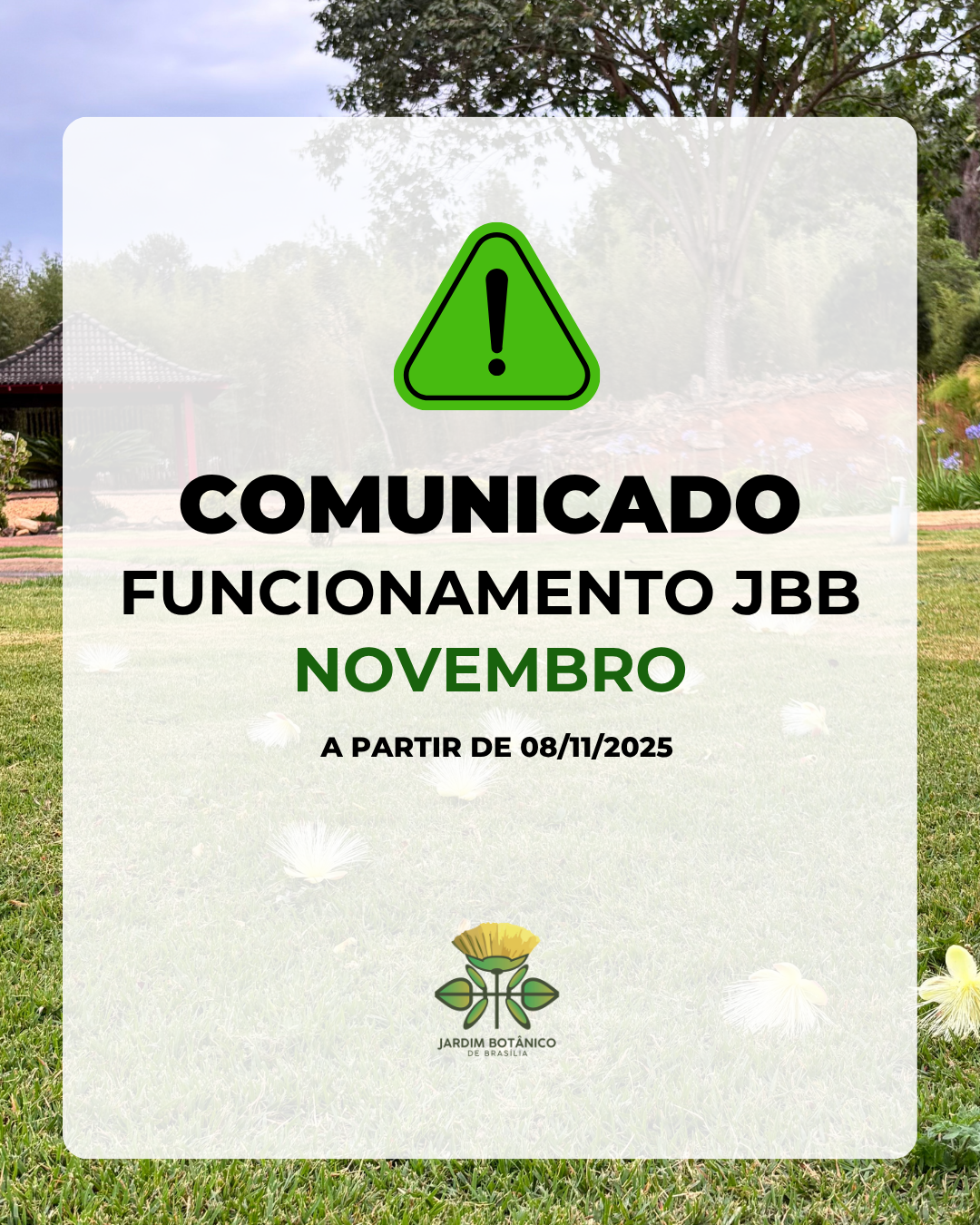 COMUNICADO O Jardim Botânico de Brasília ficará fechado para visitação de 30 de setembro a 3 de outubro de 2025, para continuidade da retirada dos pinheiros no Centro de Visitantes. O processo é gradativo e,...