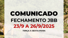 JBB – Fechado de 30/9 a 3/10 COMUNICADO O Jardim Botânico de Brasília ficará fechado para visitação de 30 de setembro a 3 de outubro de 2025, para continuidade da retirada dos pinheiros no Centro de Visitantes....